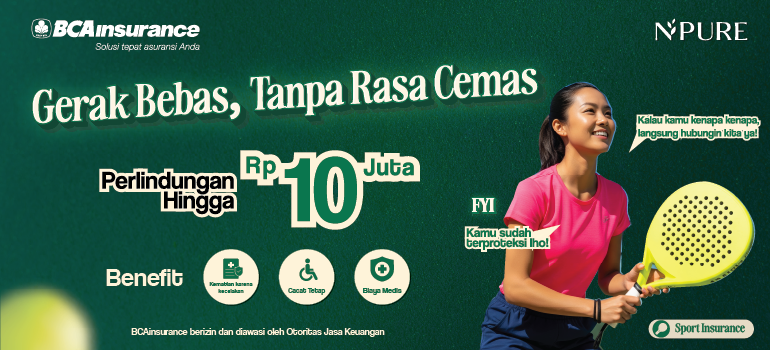 Nikmati olahraga padel tanpa rasa cemas dengan Sport Insurance dari BCAinsurance. Dapatkan perlindungan hingga Rp10 juta untuk cedera, cacat tetap, hingga biaya medis. Cocok untuk kamu yang aktif dan rutin berolahraga. Ketahui manfaat lengkapnya di sini!